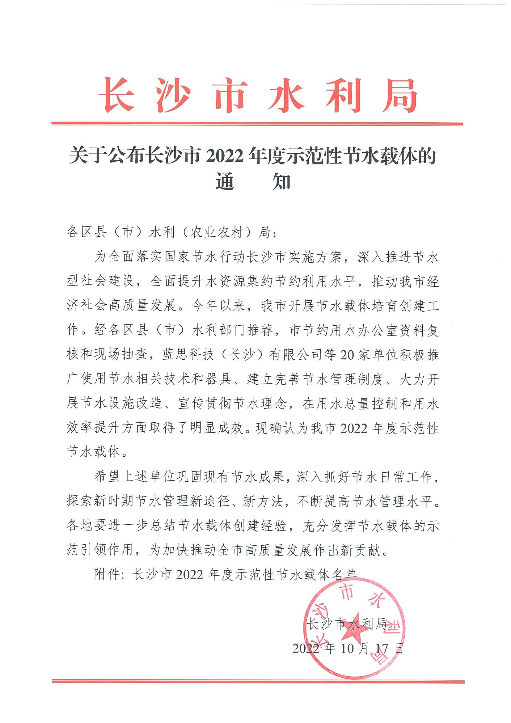 天筑六建喜獲“長沙市2022年度示范性節(jié)水載體”稱號(hào)