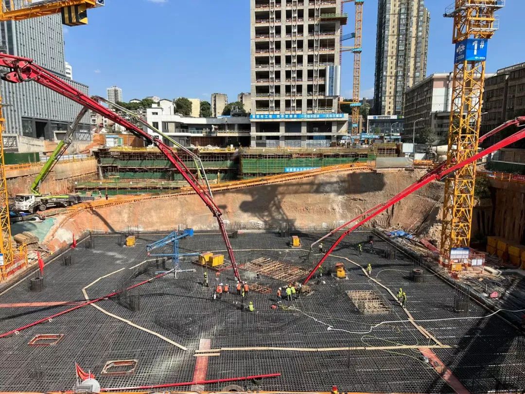 近日,由集團子公司——湖南天筑六建混凝土有限公司(下稱天筑六建)負責混凝土保供的長沙五礦廣場項目二期傳來捷報,項目1#棟塔樓近10000m3基礎(chǔ)筏板澆筑完成。